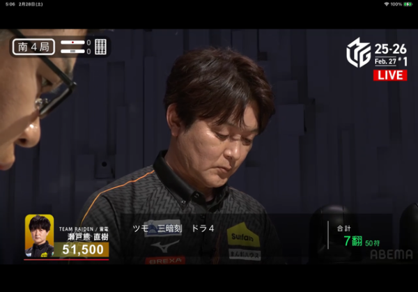 まさか4枚目のドラをツモって来るとは、、、