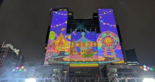 後ろのビルはプロジェクションマッピングで