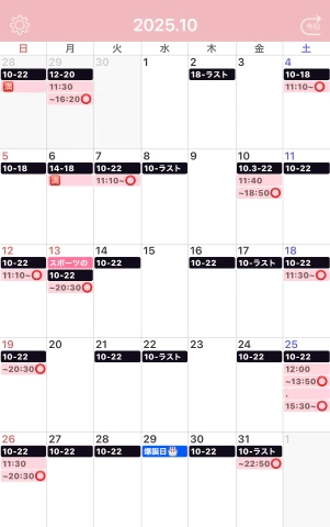 本日出勤 10:00〜翌00:00