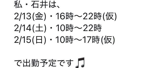 ①2/13(金)・16時〜22時(仮)
