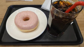 いつものように。。。アイスコーヒーストロベリーリング🍩アイスコーヒーにしたけどホットにすれば良かったかな、と。。。つい最近もこの感じあったような。。。