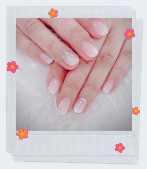自爪のピンクに白のグラデが桜の花びらみたいに可愛くて今回もお気に入り