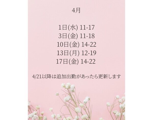 3月21日~の出勤日は仕事の予定がわかり次第