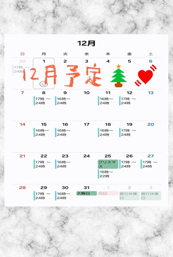 本日出勤 16:00〜翌00:00