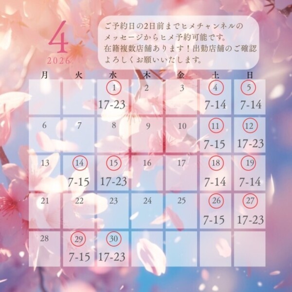 🌸4月の出勤予定🌸 トップ