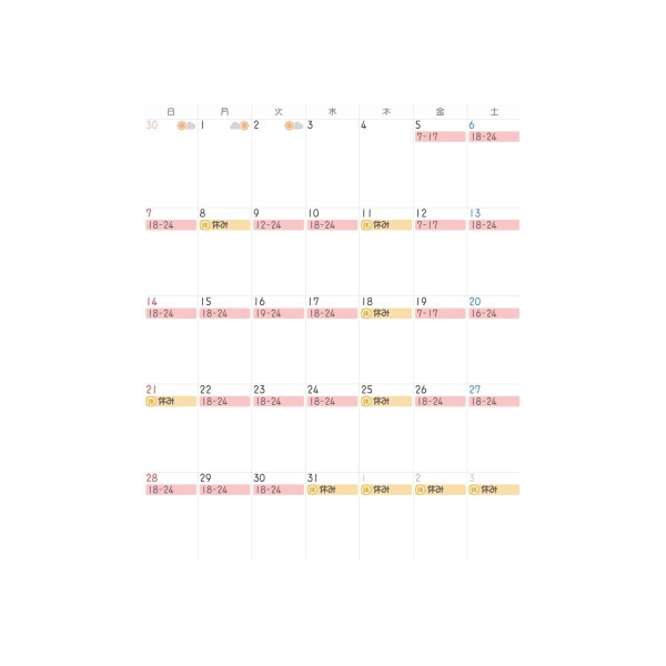 本日出勤 19:00〜翌00:00
