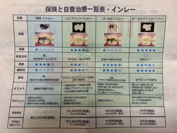 銀歯とかハイブリットとかセラミックとかの、メリットデメリットの説明を受けて、