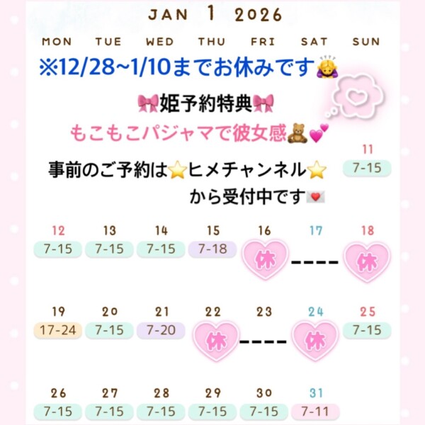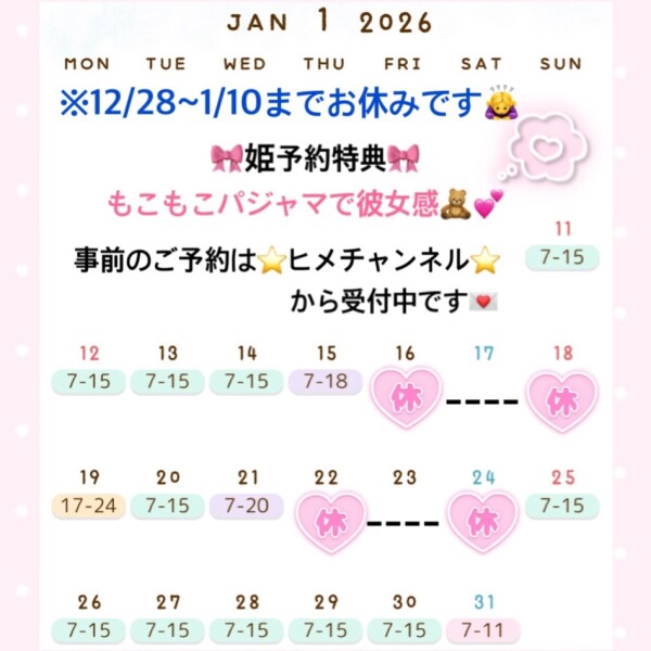 もう1月のご予約も受付可能なのでもし予定決まってたらぜひ❣️