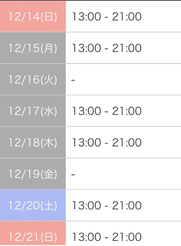 今日の空き枠🈳