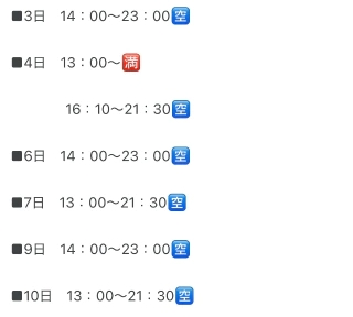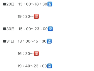 ⬇️明日以降の🈳枠⬇️