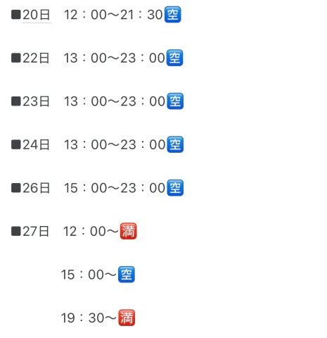 (🆕予約が入り次第まいかが更新してます🙌