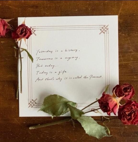 写真少々読み難いです この名言 御存知の方もいらっしゃるかなと思いますが 私の好きな 常に心にあるコトバを Yesterday is history. Tomorrow is a mystery. Today is a gift. That's why it is called the present. 過去や未来にとらわれず いまという時間 この瞬間を大切に そう思っていても なかなか難しいんですけどね なので 皆様とお逢いしているひと時を 大切に過ごしたいです 本日も素敵なお時間を 柴田と過ごしてくださり ありがとうございました 明日明後日も たのしみにお待ちしております 投稿日時