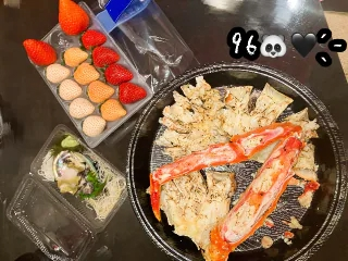 用意してくれたタラバガニ+アワビ+いちごと
