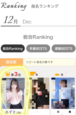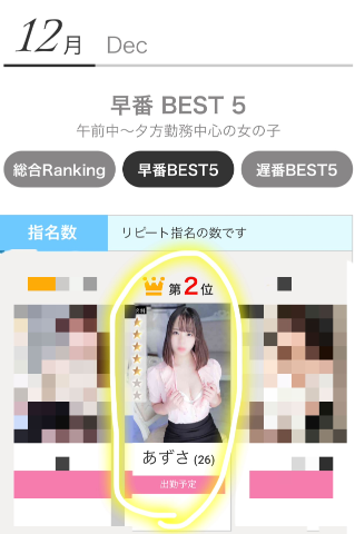 早番の本指名ランキングでは