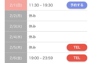 本日出勤 11:30〜19:30