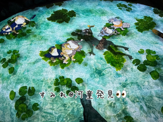 3DCGやプロジェクションマッピング、ホログラフィックスクリーンといった最先端の技術によって、すぐそこで息をしているような…まさに「動き出す」妖怪となって、あちらこちらから顔をのぞかせる。会場内には300種以上の妖怪がうごめいておりました。