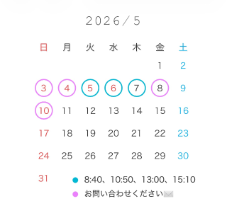 5月予定の出ていない日でも、ご希望日ありましたら教えてくださいね。