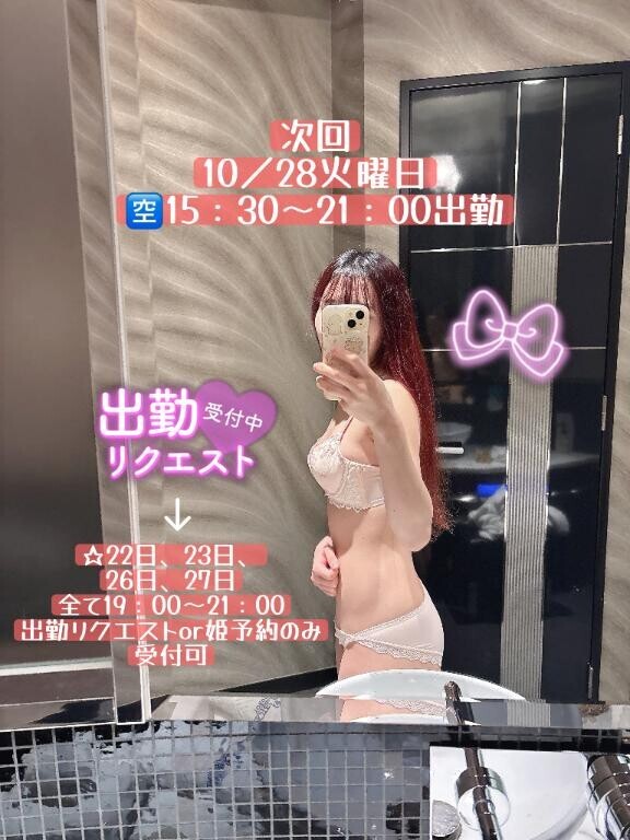 来週1週間は昼職の都合でシフトは入れていませんが、22日、23日、26日、27日は19時~21時で出勤リクエストor姫予約は受け付けておりますので、ご希望がございましたら連絡お待ちしております??