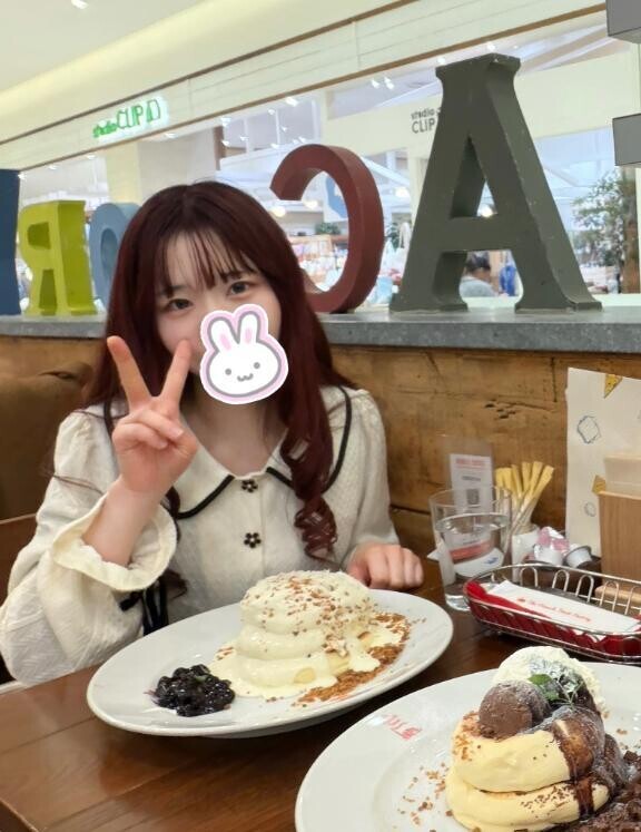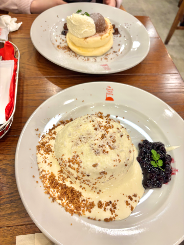 フレンチトーストやパンケーキ以外にも、ご飯系の料理も充実しており、かなり悩みましたが、ひなみはレアチーズパンケーキで先輩はショコラパンケーキを選びました