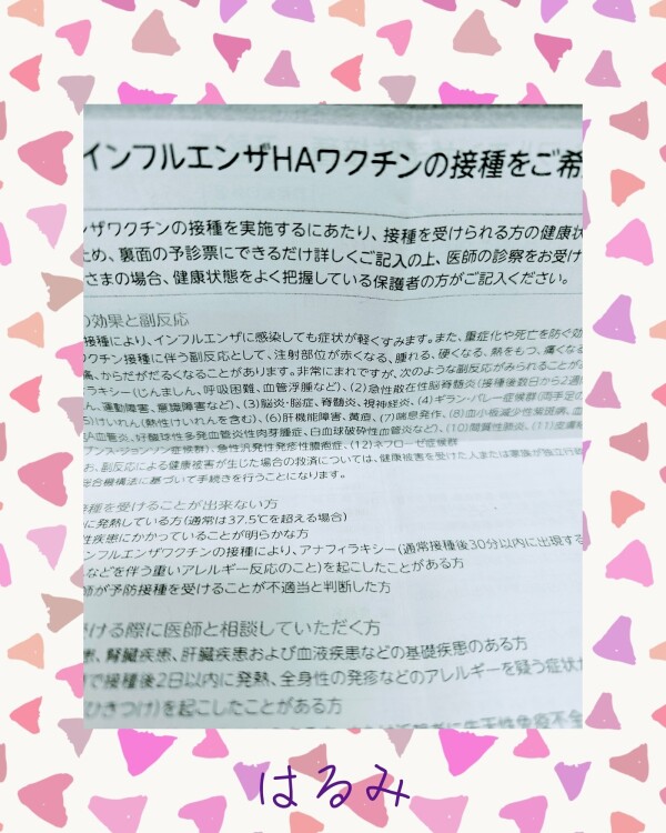 (インフルエンザワクチンも打ちました。)