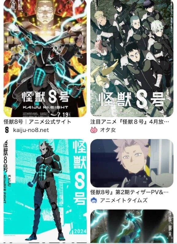 配信中の、怪獣8号みて、