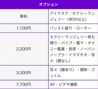 こちら可能プレイのオプション料金です