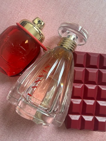お題:今日は「香りの記念日」どんな香りが好き?に回答♪甘い香りが好きです💓香水だったらこの下の3つがお気に入り😍どれも甘い香りなんですよ🩷1番右はチェリー🍒後はなんだったかな笑左2つは2個目です🫶お客様のお気に入りはなんですか⁉️今日も一緒にお仕事がんばろーねっ🩷