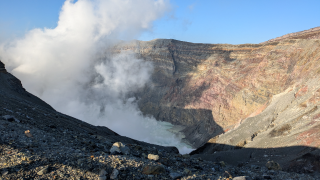 火山の火口初めて見た、すごい。