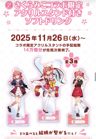 今日はお母さん泊りに来るんだけどその前にさくらみこコラボのキッチンマット(予約)取りに行ってきたよ ちなみにね、明日から…ソフトドリンクを頼めばランダムアクスタがみこちの、買えるんですランダムなので沼だけど、寿司苦手な方でもドリンクなら飲めそうだねあたしウーロン茶もホワイトウォーターしか飲めないけど頑張るおにーさまも、頑張ってみてね 12センチで小さいよ