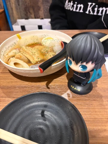 今日はルイさんと忘年会?なのかご飯したよ個室予約したのに、個室ありませんって言われたよそんなことある⁉️w今回あたし予約したけど、今度はルイさんに予約してもらおっと🙇♂️仲良しさんにもらった、ゆらゆら鬼滅をルイさんに渡したよ〜あと、鈴の音?もおでん〜🍢