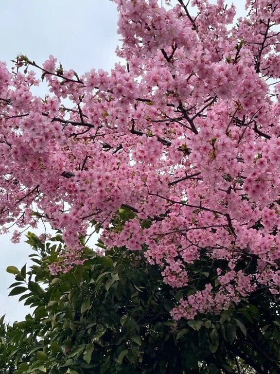 神社までの道で、もう桜がちらっと咲いていて。