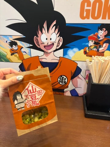 仙豆といったら悟空がカリカリと固そうなものを頑張ってるイメージだったんだけど…コラボしたやつは枝豆をあげたやつで揚げたてじゃないから、そのままの枝豆感がつよくてそのまま食べたら薄すぎたから塩かけて、シャッフルしたら美味しすぎた食べるなら塩を、降ってね