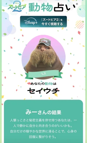 ディズニーの、ズートピアの占いだけどしてみたえっ、あたしそーゆう人間?(前半の文章)あたしのこと知ってるおにーさま判断よろしくお願いします