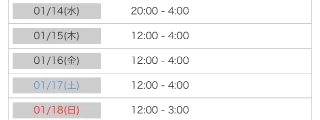 本日出勤 12:00〜翌04:00