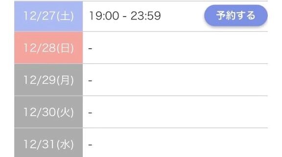 こんにちは次回12/27(土)19時から出勤致します✨後はまだ反映されていないけど12/31(水)8時から出勤予定です♡(・ω・ ⊃ )⊃≡すいー今年も残りわずか、ひなのとお遊びしましょっ