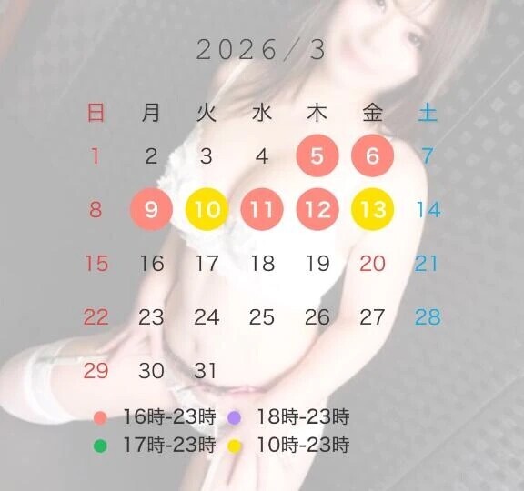 5日16時-23時6日16時-23時9日16時-23時10日10時-23時11日16時-23時12日16時-23時13日10時-23時7日か8日どちらか出ると思います❣️ご予約お待ちしております🥰