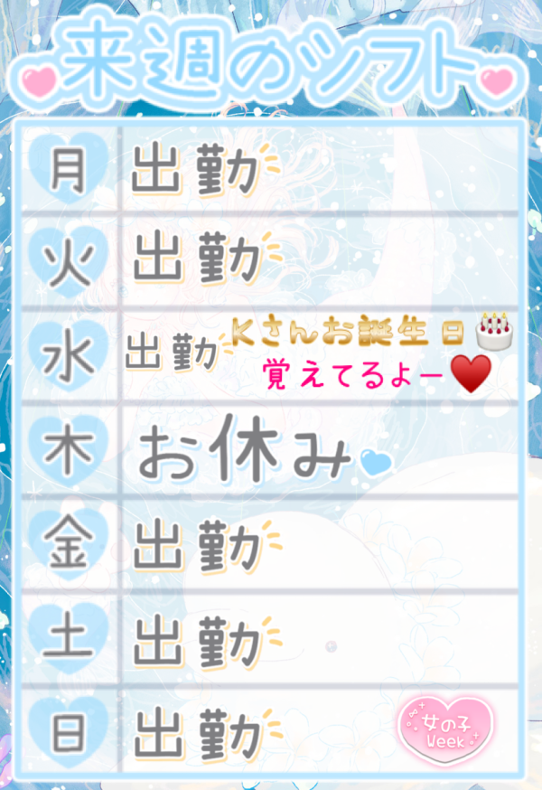 週末か来週が女の子weekなので