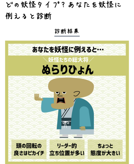 あなたを妖怪に例えると診断