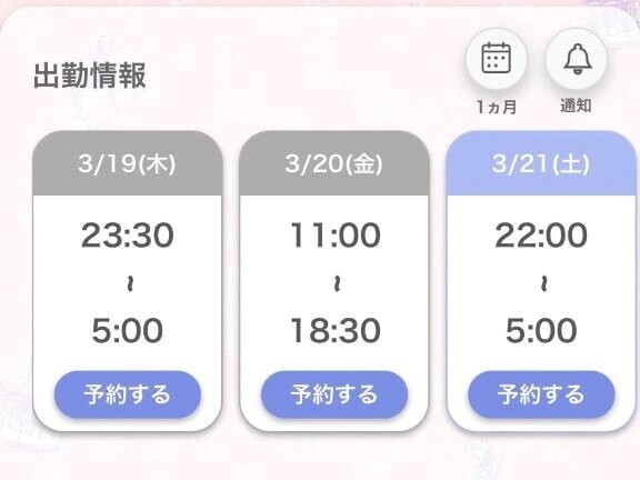 本日出勤 16:00〜23:00
