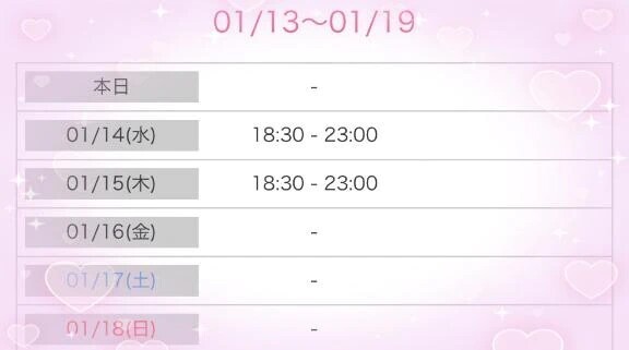 本日出勤 17:30〜翌00:00