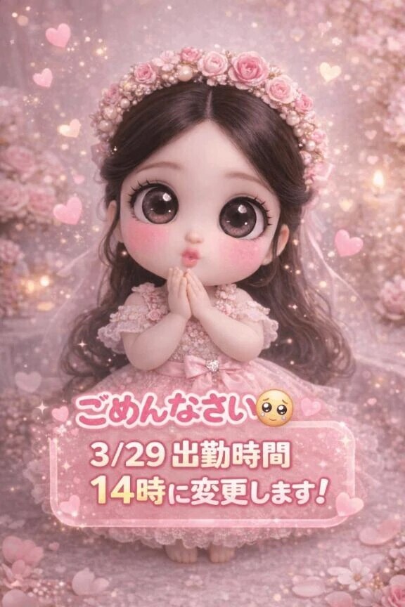 本日14時からの出勤に変更になりました✨
