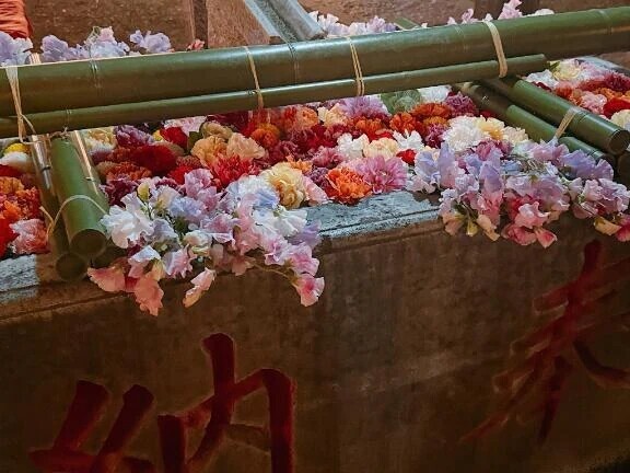 手水舎、花手水になっていて、寒いけどとても癒されました😷