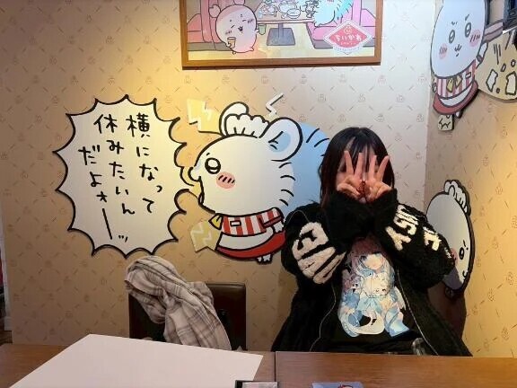 この前ちいかわレストランに行ってきてかわいく一緒に撮れたモモンガちゃんです🫶