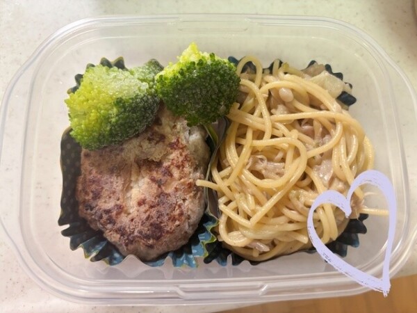 後は冷凍してたブロッコリーと豆腐ハンバーグを一つ!!
