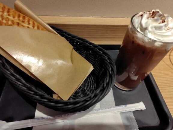 本日のランチはBECKSでソーセージポテトにアイスココアにしました🍞