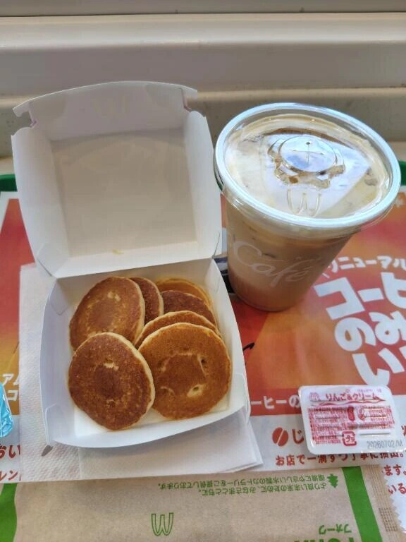 本日のおやつはマックのミニパンケーキとアイスカフェラテにしました🍰