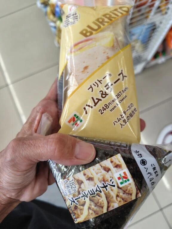 本日のランチは、ブリトーハムチーズとツナおにぎり🍙