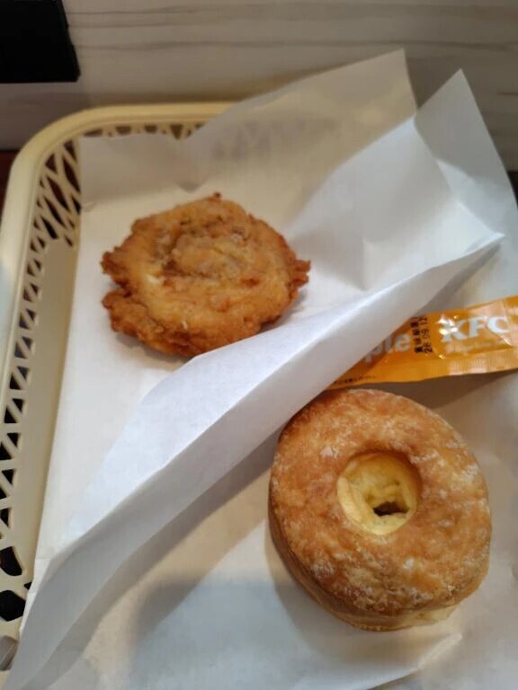 本日のランチは、ケンタッキーでクーポンを利用して、チキンにビスケットにアイスミルクティーにしました🍗