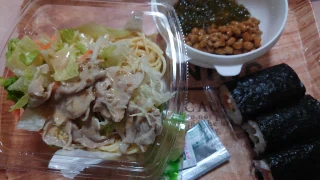 帰宅後食べました今夜はパスタサラダのりまきめかぶ納豆パスタサラダは出勤中に食べようとしたけど食べなかったやつふふふ