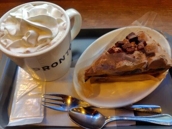 こんにちは😊この後、江東区に移動致します!本日の待機中のおやつはプロントのチョコナッツケーキとホットココア☕甘くて幸せでした🩷本日はエキュート赤羽のお仕事に来ました!